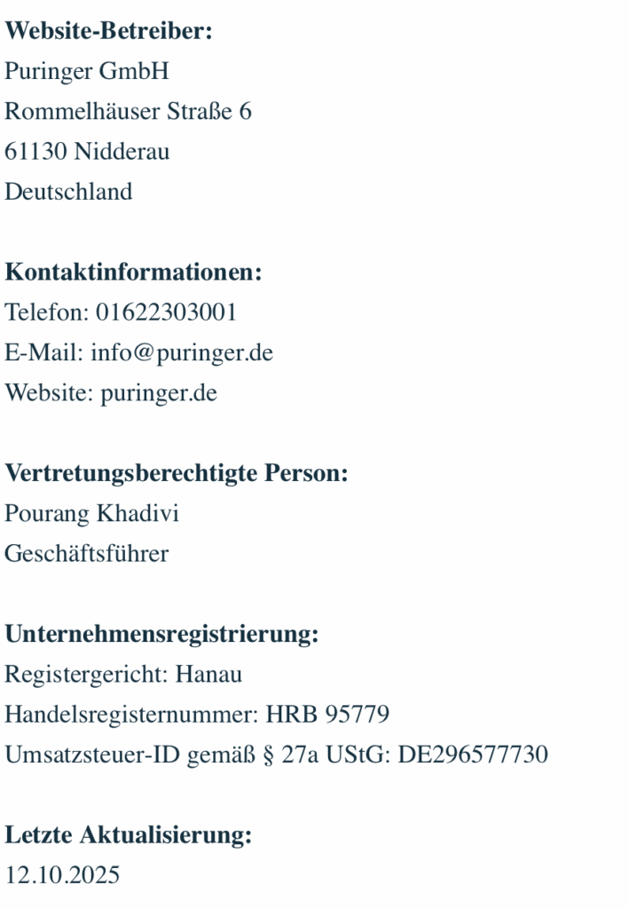Wichtiger Hinweis: Diese Impressum-Vorlage wurde mit größter Sorgfalt erstellt. Dennoch übernehmen wir keine Gewähr für die Vollständigkeit und Richtigkeit der Inhalte sowie für deren Rechtssicherheit. Es liegt in der Verantwortung des Nutzers, die Vorlage eigenständig an die jeweils geltenden gesetzlichen Bestimmungen anzupassen und auf ihre Aktualität zu prüfen. Eine Haftung für Schäden, die direkt oder indirekt aus der Nutzung dieser Vorlage entstehen, wird ausgeschlossen.
